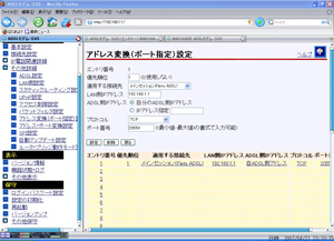 優先順位:1 適用する接続先:メインセッション LAN側IPアドレス:PCのIPアドレス ADSL側IPアドレス:自分のADSL側IPアドレス プロトコル:TCP ポート番号:80