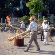 公民館でひとしきりお話を伺い、メインの目的である「おやれ」なる行事を見学。これが右の写真です。全国的に見られる虫送り行事のことなのですが、「おやれ」とは要するに「追い遣れ」の転訛ということになるでしょう。