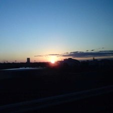 昨日で私の正月休みは終わりでございまして、本日は三重県内で歌の練習があるため、朝6時過ぎに幕張を出、東海方面へとひた走ります。高速バスですね。まあ、安いです。右にバス内で撮った4日目の日の出の写真などを貼り付けておきます。江東区辺りを走行中でした。