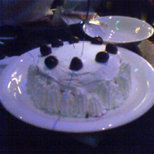 本日(3/8)は私の誕生日。津新町での歌の練習から戻って、その足でたまたま名古屋に来ている後輩と名駅近くのブリティッシュ・パブなどに出向いたのですが、そうこうするうちに図らずも日付が変わりましてそんなこんなでお店から誕生日特典のケーキを頂きました。花火が付いていたのですが写真はそれが消えてからのものです。暗くて写りが悪いのですが、所詮は携帯電話、といったところ。