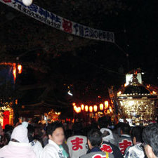 写っているのは、子守神社の御輿が祭の中心である三山の二宮神社境内に入っていくところです。これが本日の18時30分くらい。御輿は既にここから幕張に戻ってきておりまして、夜半からいよいよ磯出祭へとなだれ込みます。一通り終わるまでには、明日いっぱいかかる模様です。