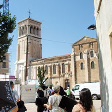 午後イチで出発して、暑い最中に到着市街地なので、バスを停めるのが難しかったようですね。会場となる教会は、大聖堂(カテドラル)とは言っていますがそこまで大きくはありません。外観はこんな感じ。