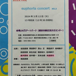 【出演情報】Euphoria concert No.3。 下記のコンサートに出演します。是非ご来場ください。 Euphoria concert No.3 日時:2024年3月12日(火)13:00~(開場12:30) 場所:みどりアートパーク(田園都市線 横浜線 長津田駅4分) 入場無料 大勢が出演する声楽のコンサートです。私はG.ドニゼッティ作『愛の妙薬』冒頭のカヴァティーナ'Benedette queste carte!'(ソプラノ独唱)に、ネモリーノ役としてちょこっと加わります。 と、云う事で。 前の記事 次の記事 コメント コメントする コメントの投稿 コメントの返信 コメント 名前 電子メール URL サインイン情報を記憶